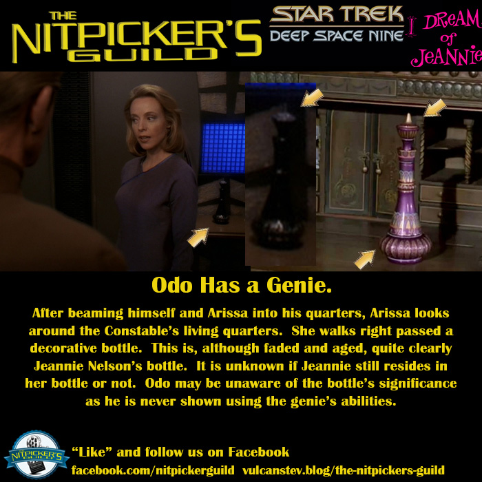 Because as Nitpickers we KNOW it’s not a set dresser trying to slip in a reference to a hit television show from the 1960s. We KNOW there’s an elaborate backstory of how Odo came into possession of this particular bottle.