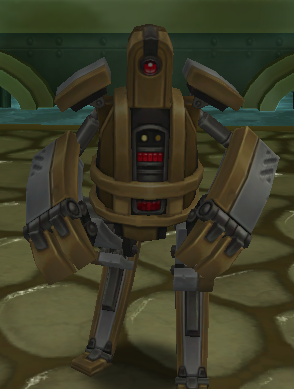 “Halt, organic lifeform. We know you. You are hostile. You are untidy. You destroy our Sani-Bots and leave the pieces all over the ground. This cannot continue. When we saw the Shadow, we saw the truth. All life must become sanitary, must become Sani-bot. You will be assimilated. You will be clean like us.” Sani-Leader