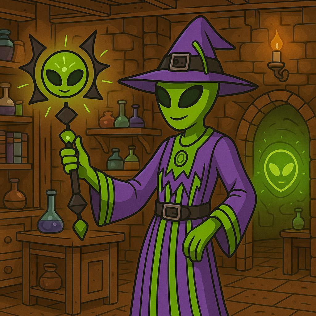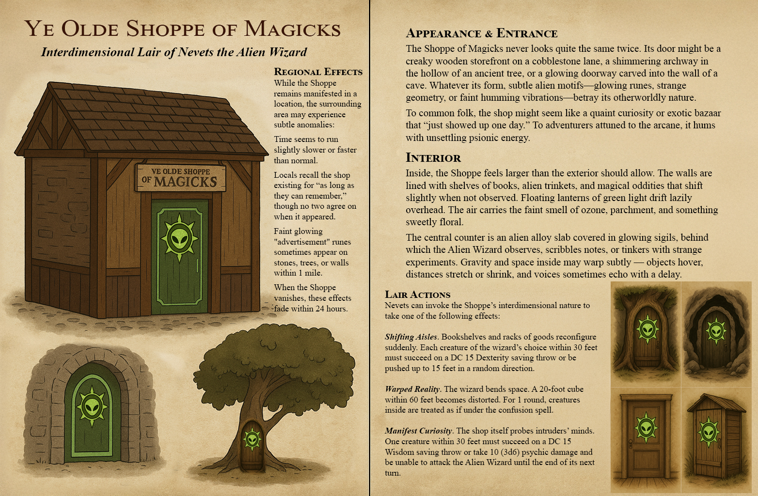 Original Nevets image was graciously produced for Alien Graphics by Pipdidart. Ye Olde Shoppe of Magicks base images were built using ChatGPT using prompts by Alien Graphics ©2025 Alien Graphics