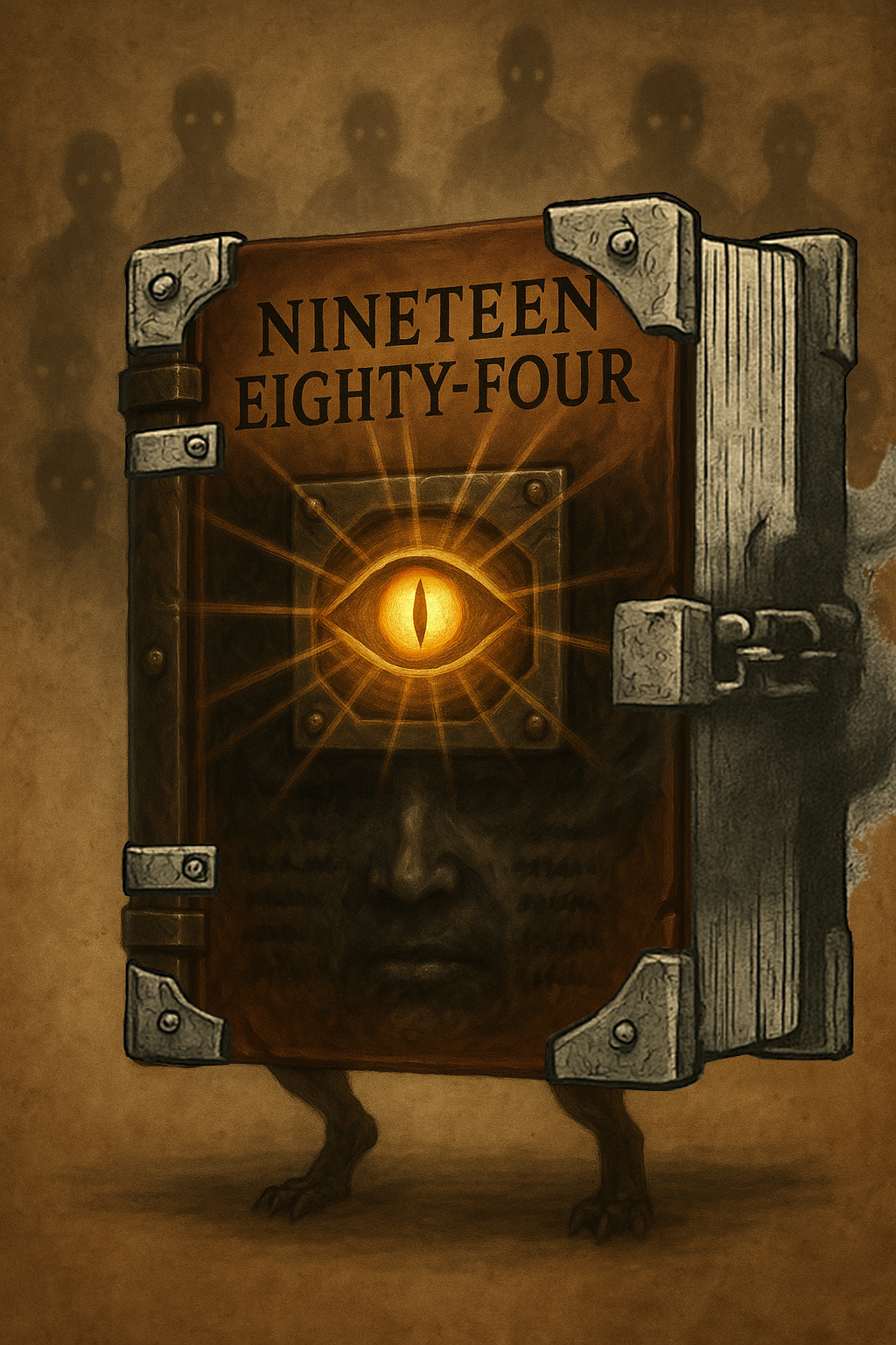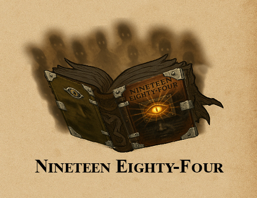 - Found chained to a podium under constant watch, whispering “War is Peace. Freedom is Slavery. Ignorance is Strength.”
