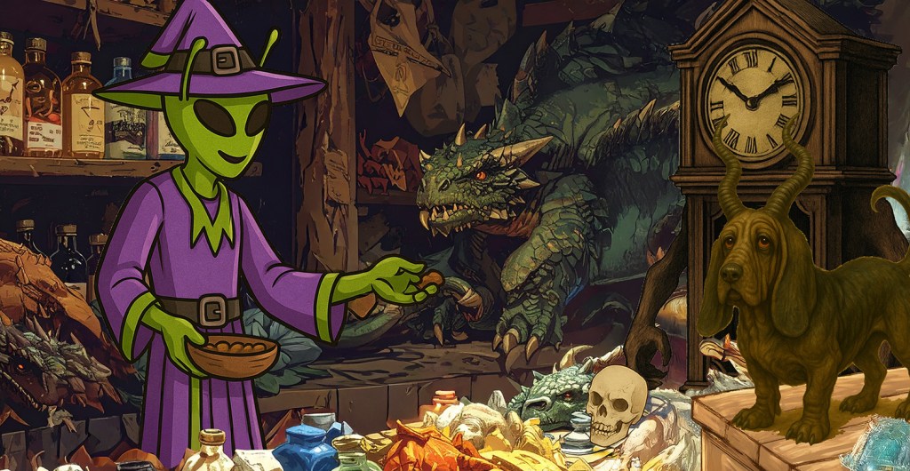 If you’d like Nevets and his Shoppe of Magicks to make a guest appearance in your game check out his Statblock here and info about the Shoppe here