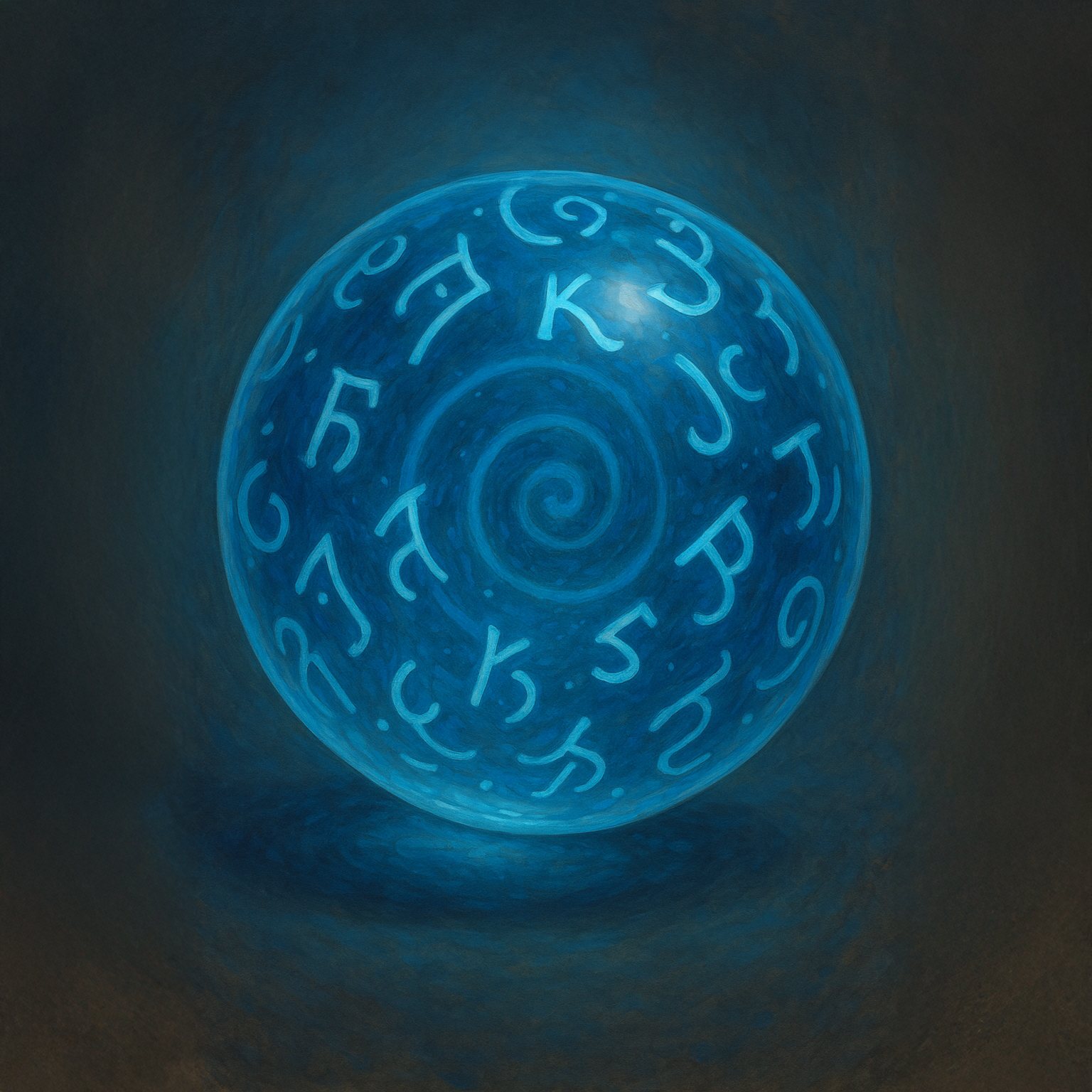 The orb is sentient (Int 16, Wis 18, Cha 14) and speaks telepathically with its attuned bearer. Its “voice” is calm and introspective — a steady whisper inside the mind that feels both comforting and unsettlingly familiar.