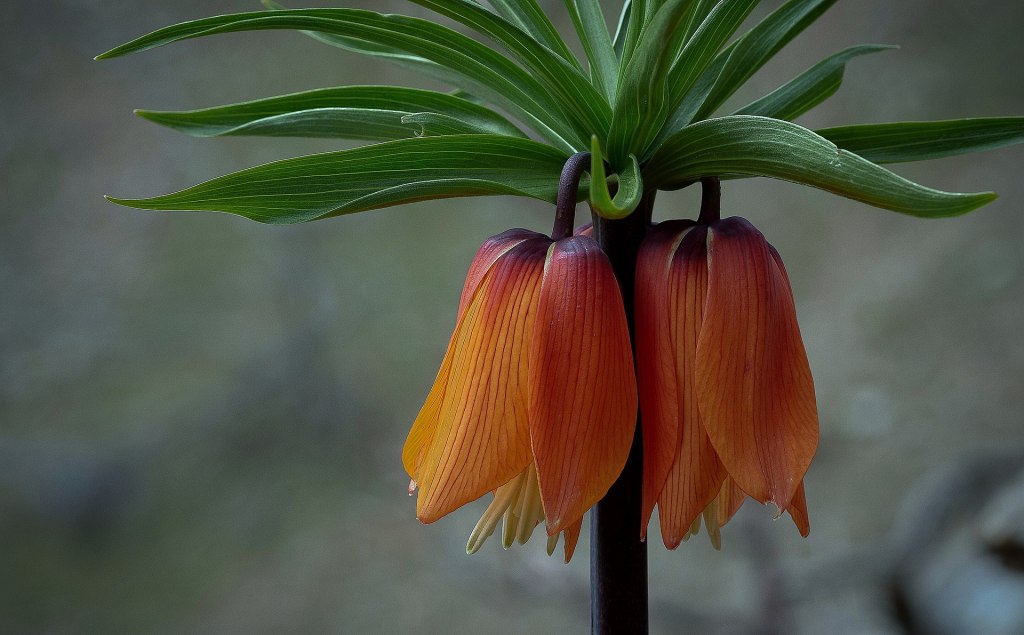 Fritillaria imperialis, the crown imperial, imperial fritillary, Kaiser’s crown, or Kurdish tulip, is a species of flowering plant in the lily family Liliaceae, native to a wide stretch of Asia including Turkey, Iran (e.g. Kurdistan), Iraq, Afghanistan, Pakistan, Northern India, and the Himalayan foothills. It is also widely cultivated as an ornamental and reportedly naturalized in Austria, Sicily, and Washington State, USA. The common names and the epithet “imperialis”, literally “of the emperor”, refer to the large circle of golden flowers, reminiscent of an emperor’s crown.