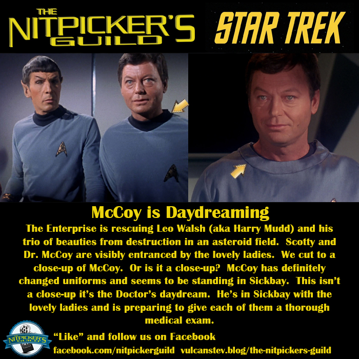 What other explanation could there be for McCoy’s sudden shift in location and clothes? It’s definitely NOT the fact that McCoy’s close-up was pulled from different footage filmed in sickbay.