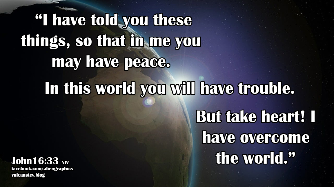 33 “I have told you these things, so that in me you may have peace. In this world you will have trouble. But take heart! I have overcome the world.”
