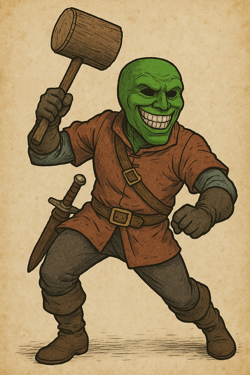 Forged by the trickster god Loki, this mask warps reality around its wearer, channeling unbridled chaos and primal magic. The mask craves mischief, laughter, and wild improvisation — yet it corrupts with excess, pushing its host toward reckless, cartoonish extremes.