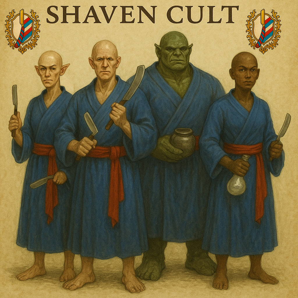They often ambush travelers, offering “cleansing” before “combat.” If a target willingly allows depilation, the cult will attempt indoctrination. Resistance ensures a fight — complete with magical razors and enchanted foam bombs.