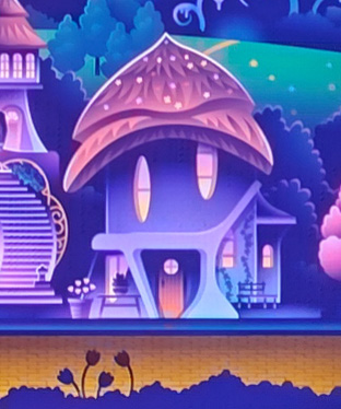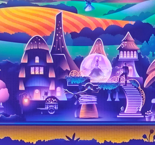 I believe that’s the Haunted Forest behind Dorothy’s farmhouse, followed by the Witch’s Castle and then a cameo by the Scarecrow, Toto, Dorothy, the Tin Woodsman, an the Cowardly Lion.