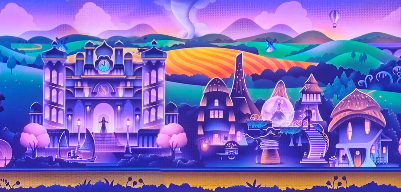 The Wizard’s balloon and the flying monkeys can also be seen.