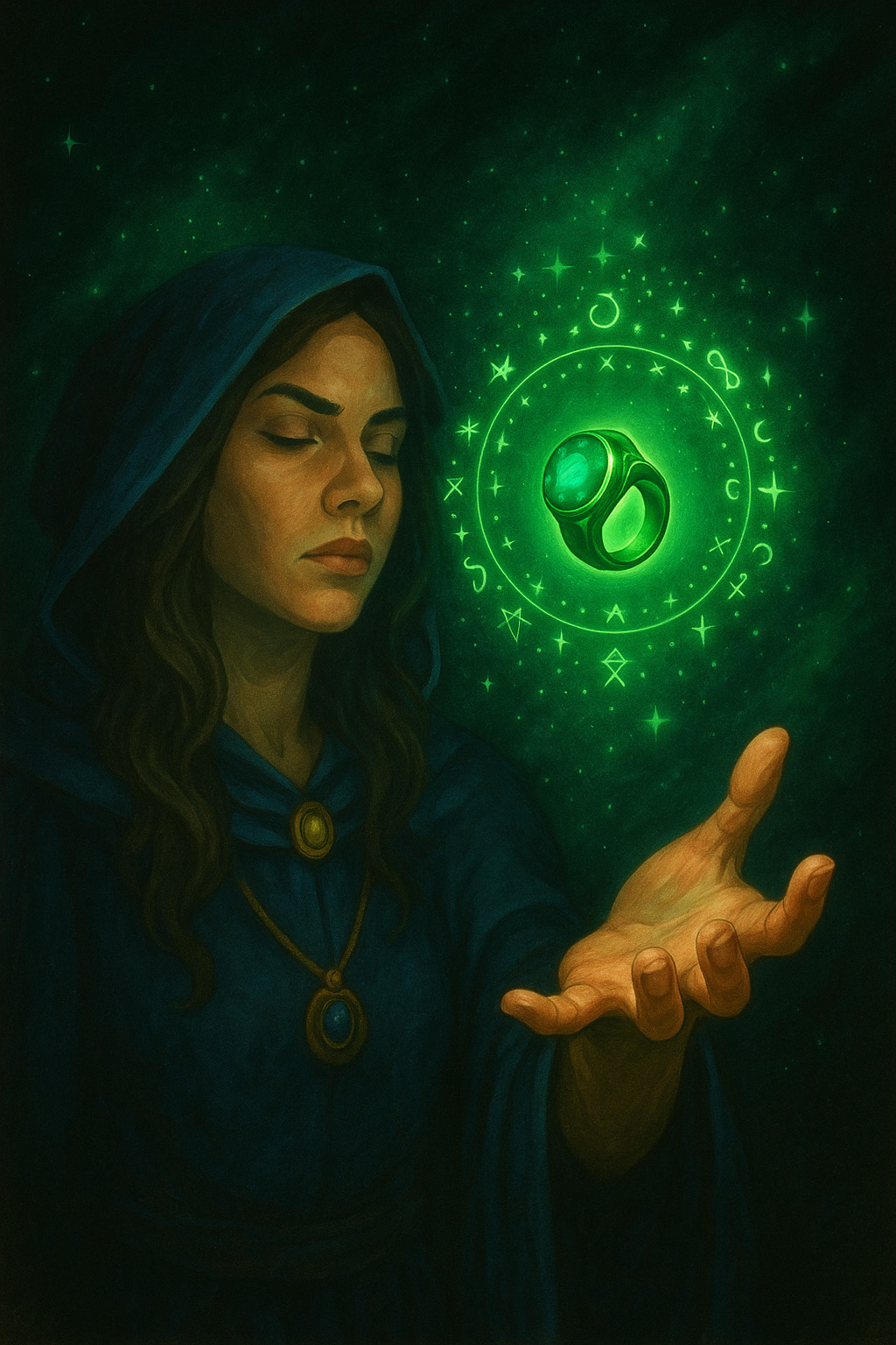 The ring glows with a brilliant emerald aura that reflects the wearer’s emotional focus. Fear, doubt, or hesitation cause the light to dim — but courage and conviction make it burn like a newborn star.