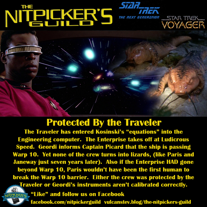 So either Geordi’s sensors and instruments aren’t calibrated for such high speeds, or the Traveler protected the entire crew. Or maybe just a touch of both.