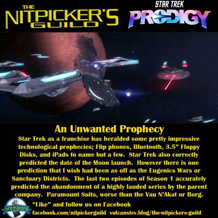 For the first nit covered for Star Trek: Prodigy, I decided cover THE BIGGEST MISTAKE ever made in Star Trek since NBC looked at raw numbers instead of demographics. But since I can’t nitpick real world decisions made by suits…