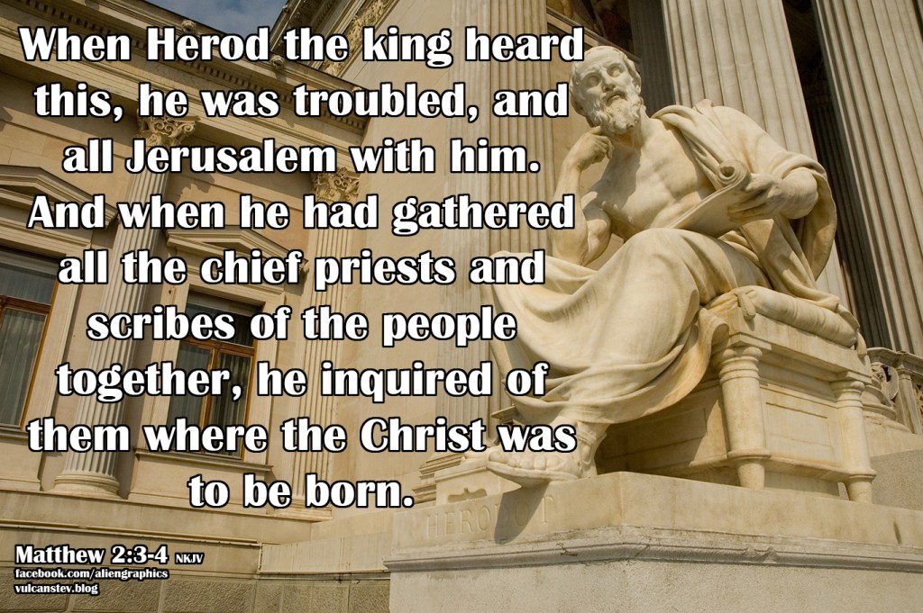 3 When Herod the king heard this, he was troubled, and all Jerusalem with him. 4 And when he had gathered all the chief priests and scribes of the people together, he inquired of them where the Christ was to be born.