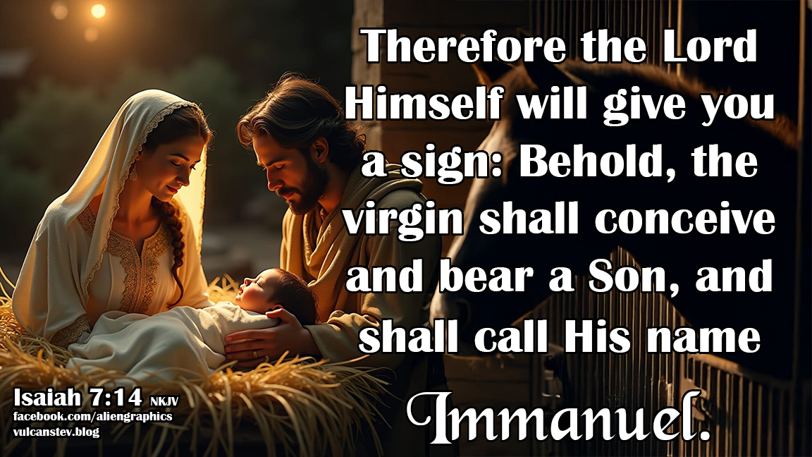 13 Then he said, “Hear now, O house of David! Is it a small thing for you to weary men, but will you weary my God also? 14 Therefore the Lord Himself will give you a sign: Behold, the virgin shall conceive and bear a Son, and shall call His name Immanuel. 15 Curds and honey He shall eat, that He may know to refuse the evil and choose the good. 16 For before the Child shall know to refuse the evil and choose the good, the land that you dread will be forsaken by both her kings. 17 The Lord will bring the king of Assyria upon you and your people and your father’s house—days that have not come since the day that Ephraim departed from Judah.”