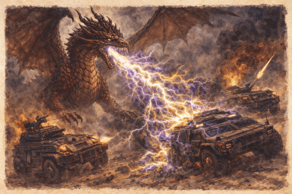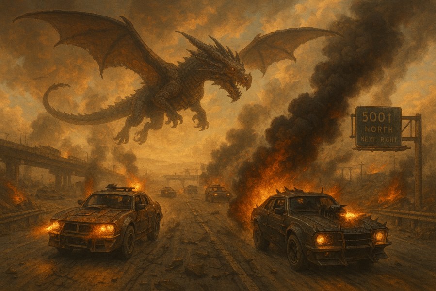 Caraxes was originally conceived as the catalyst and reason for the eponymous Dragon’s Keep Car Wars arena. I never statted him out in 2023, as the arena was the only thing my free-lance commission covered. I would be remiss if I statted him out for 5e and not for Car Wars.