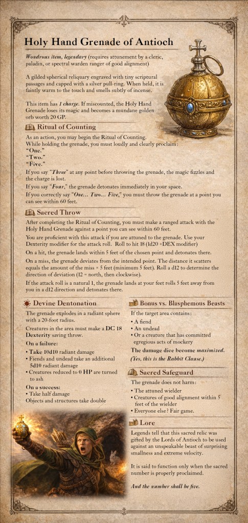 Holy Hand Grenade of Antioch base images were built using ChatGPT using prompts by Alien Graphics ©2026 Alien Graphics